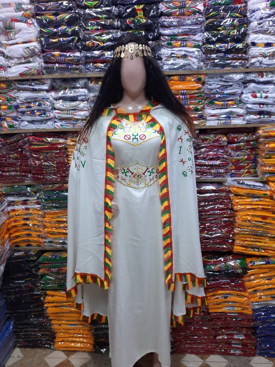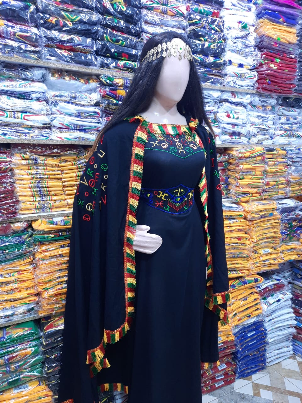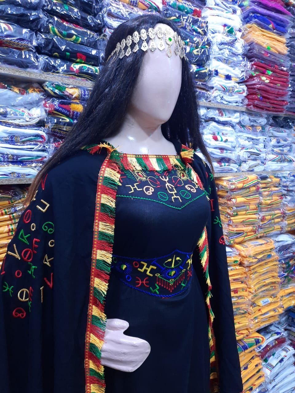 عباية تونسية أمازيغية راقية تجمع بين عمق التراث الأمازيغي وأصالة اللمسة التونسية، بتصميم أنيق يعكس الهوية المغاربية بروح عصرية. طقم متكامل يمنحك إطلالة فخمة ومميّزة، مثالية للمناسبات الخاصة والظهور الراقي.
