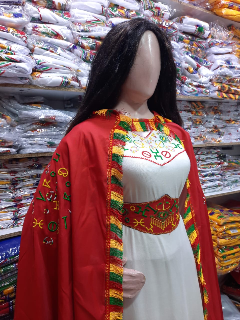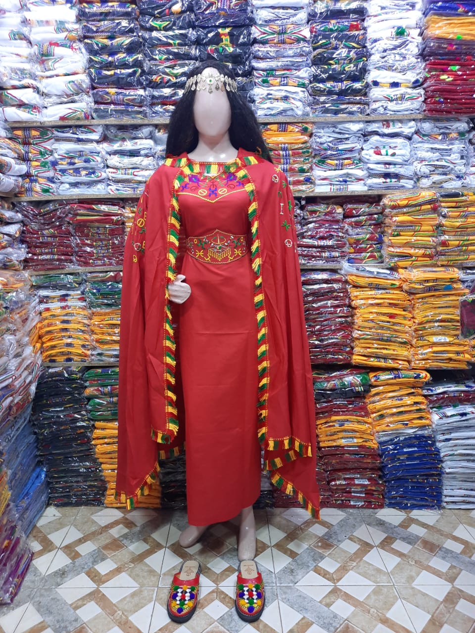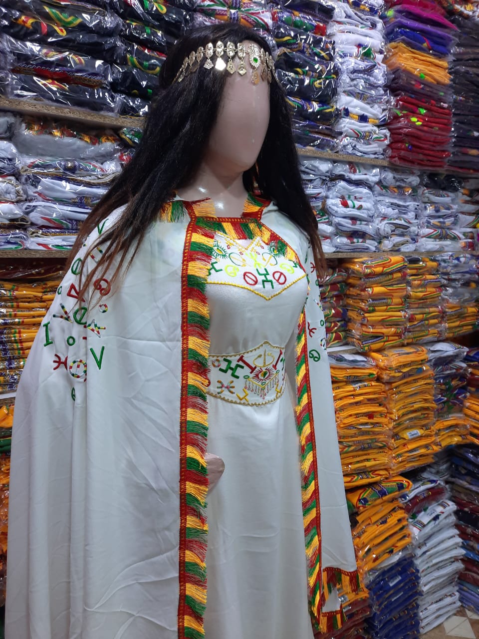 عباية تونسية أمازيغية راقية تجمع بين عمق التراث الأمازيغي وأصالة اللمسة التونسية، بتصميم أنيق يعكس الهوية المغاربية بروح عصرية. طقم متكامل يمنحك إطلالة فخمة ومميّزة، مثالية للمناسبات الخاصة والظهور الراقي.